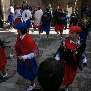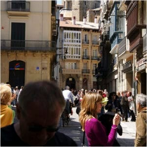 Onze reis bracht ons richting het Baskenland. De landschappen werden dramatischer dan een soap-aflevering: bergen, zee, en een taal waar zelfs onze GPS even moest gaan liggen. En daar was San Sebastián — een stad waar pintxos heilig zijn. We gingen voor drie hapjes, maar vijf bars later stonden we trots in een steegje onze zesde ansjovis te analyseren alsof we juryleden waren bij een gastronomisch kampioenschap.