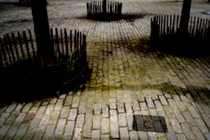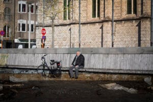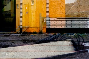 Ik was er in de late voormiddag, een tijdstip waarop de buurt z’n adem inhoudt. Alsof iedereen net vertrokken was: de straten leeg, de winkels gesloten, de ramen blind. En toch: overal fietsen in de rekken. Stilzwijgende getuigen van leven dat net verdwenen is. De afwezigheid is voelbaar, bijna tastbaar. Het is in die tussenruimte dat ik fotografeer.